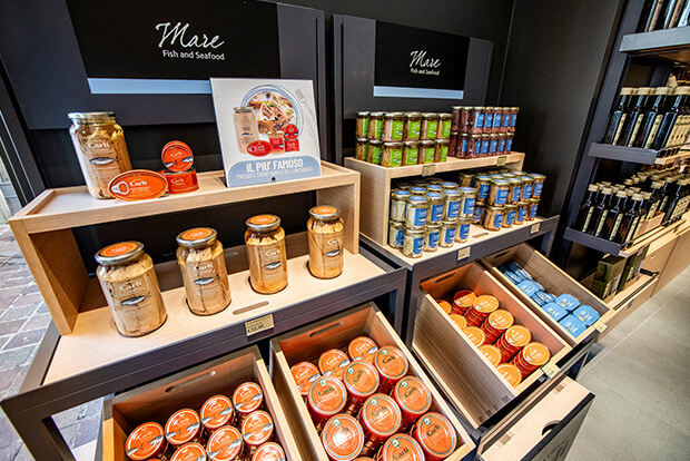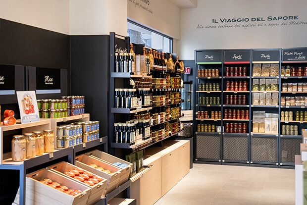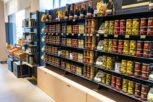 Das Emporio in Bergamo, im Herzen der Stadt, ist mehr als nur ein Geschäft – es ist ein Ort, an dem du dich als willkommener Gast fühlst, ein Raum, in dem du die besondere Verbindung spüren kannst, die uns seit jeher mit unseren Kundinnen und Kunden verbindet. Tritt ein und tauche ein in ein Erlebnis für alle Sinne: Entdecke in den Regalen die typischsten Feinkostspezialitäten der ligurischen und mediterranen Tradition – natürlich zusammen mit unserem Öl.
