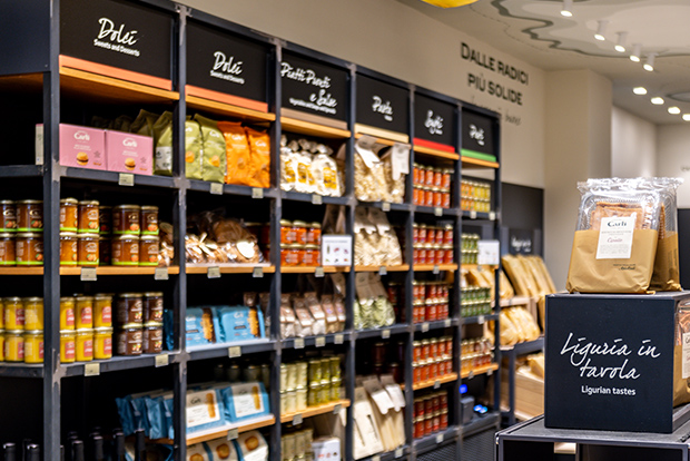 Das Emporio, mit Blick auf einen der schönsten Plätze im Stadtzentrum, hat eine warme und einladende Atmosphäre, die den Besuch angenehm macht und dich wie einen willkommenen Gast fühlen lässt. Beim Eintreten entdeckst du das Wesen unseres Unternehmens: die Leidenschaft für die Qualität unserer Produkte – vom Olio Carli bis zu den vielen ligurischen und mediterranen Spezialitäten – sowie das besondere Verhältnis von Vertrauen und echter Vertrautheit mit unseren Kundinnen und Kunden, das uns seit jeher auszeichnet.