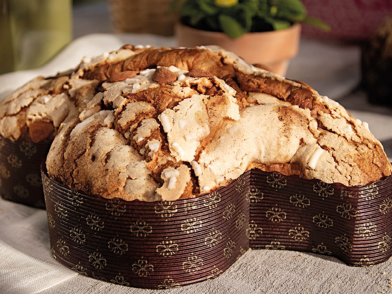 Unsere Colomba Classica wird ausschließlich mit natürlichem Sauerteig und Nativem Olivenöl Extra hergestellt. Ein elegantes, duftendes Ostergebäck, verfeinert mit kandierten Orangenschalen und einer knusprigen Mandelglasur auf der Oberfläche.