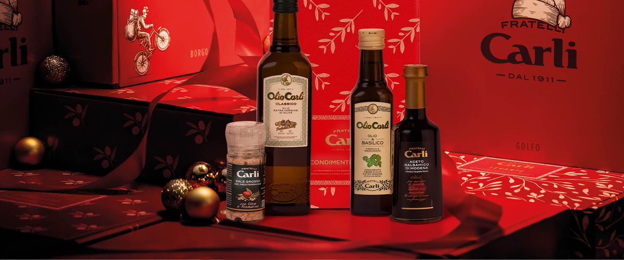 Ein Geschenkpaket, das die Kunst des Würzens auf italienische Art zelebriert. Sorgfältig ausgewählte Zutaten verfeinern jedes Gericht: harmonisches Olivenöl Extra Vergine, frisches Basilikumöl, intensiver Balsamico di Modena IGP und mediterranes Meersalz mit Oliven und Rosmarin.
