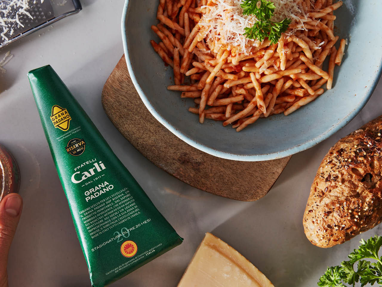 Grana Padano, die Ikone unter den Made in Italy Produkten, ist der meistverkaufte italienische Käse der Welt. 20 Monate gereift ist dieser Hartkäse der ideale Begleiter für jeden Tag.