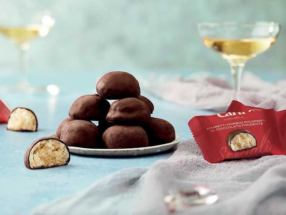 Das Geheimnis dieser Köstlichkeiten? Eine knusprige Glasur aus Bitterschokolade, mit der das zarte Herz unserer Amaretti di Mombaruzzo überzogen wird. Bei diesem süßen Leckerbissen verschmelzen die ausgewogene Süße der Schokolade und der bittersüße Geschmack der Amaretti zu einer perfekten Harmonie.